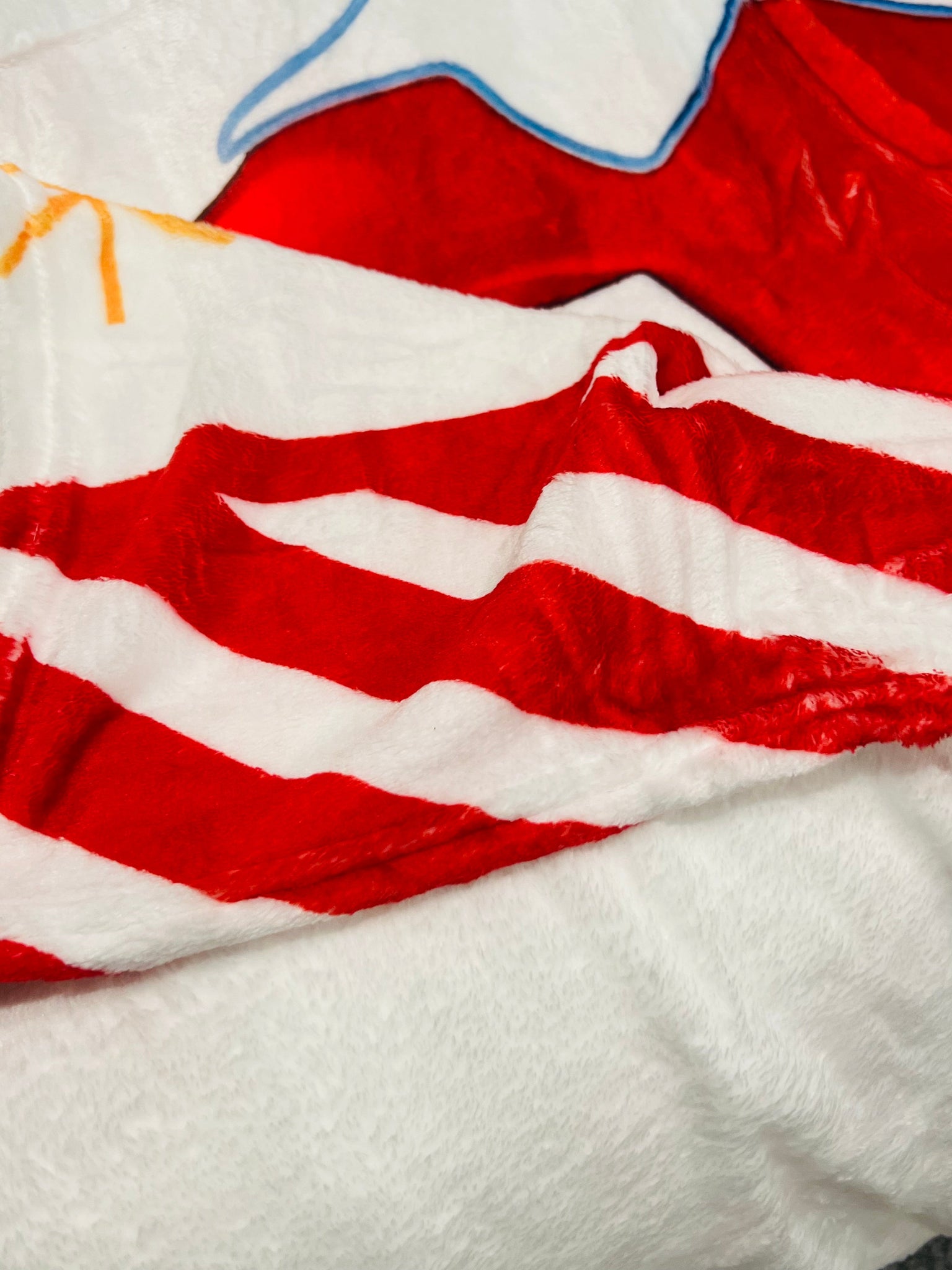These blankets are big and AMAZING!! SO SOFT! The pictures of the elf blanket are my IRL photos so you can see quality- all blankets will be printed on ONE side, white fleece on the other side.