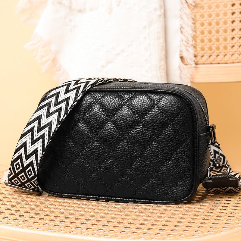 This quilted stitch vegan leather crossbody purse offers a stylish and practical design. The 8.4"x5.5"x3.3 dimensions provide plenty of space -- two interior pockets and a zipper closure make for convenient storage. Choose from five beautiful colors to match any outfit.