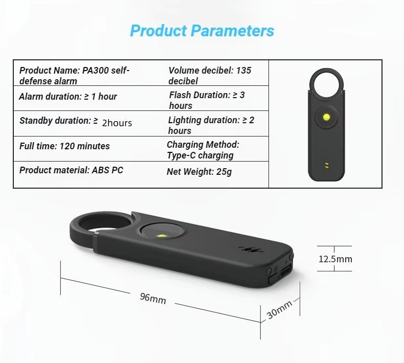 This compact self-defense alarm and flashlight is as loud as a firecracker at 135 decibels! With a Type C charging port and the ability to continue sounding for an hour, it's perfect for on-the-go safety.